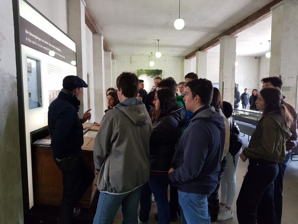 Am 01. April 2019 besuchten die Abschlussklassen die KZ Gedenkstätte Dachau. Bereits im Geschichtsunterricht beschäftigten sich die Schüler mit dem Nationalsozialismus. Nun sollten sie sich mit der nationalsozialistischen Geschichte vor Ort auseinandersetzen. Die beiden Klassen wurden in drei Gruppen aufgeteilt und jeweils von einem Referenten betreut. Diese führten die Schülergruppen durch die Gedenkstätte und schilderten sehr anschaulich, wie das qualvolle Leben der 200.000 Gefangenen im Konzentrationslager aussah und auf welche Weise 41.500 Menschen ermordet wurden. Vor allem durch das Betrachten von Einzelschicksalen und der „Überreste“ wie beispielweise die Krematorien, erfuhren die Schüler Geschichte „hautnah“. Nach der lehrreichen und vor allem emotionalen Führung wurde in den Gruppen über die Bedeutung der Gedenkstätte gesprochen. Spätestens an diesem Tag wurde jedem Schüler klar: Geschichte ist nicht nur ein Fach, in dem man Jahreszahlen und Geschehnisse aus der Vergangenheit auswendig lernt. Geschichte braucht man, um daraus zu lernen. Die Fehler, die in der Vergangenheit gemacht wurden, dürfen sich nicht mehr wiederholen.