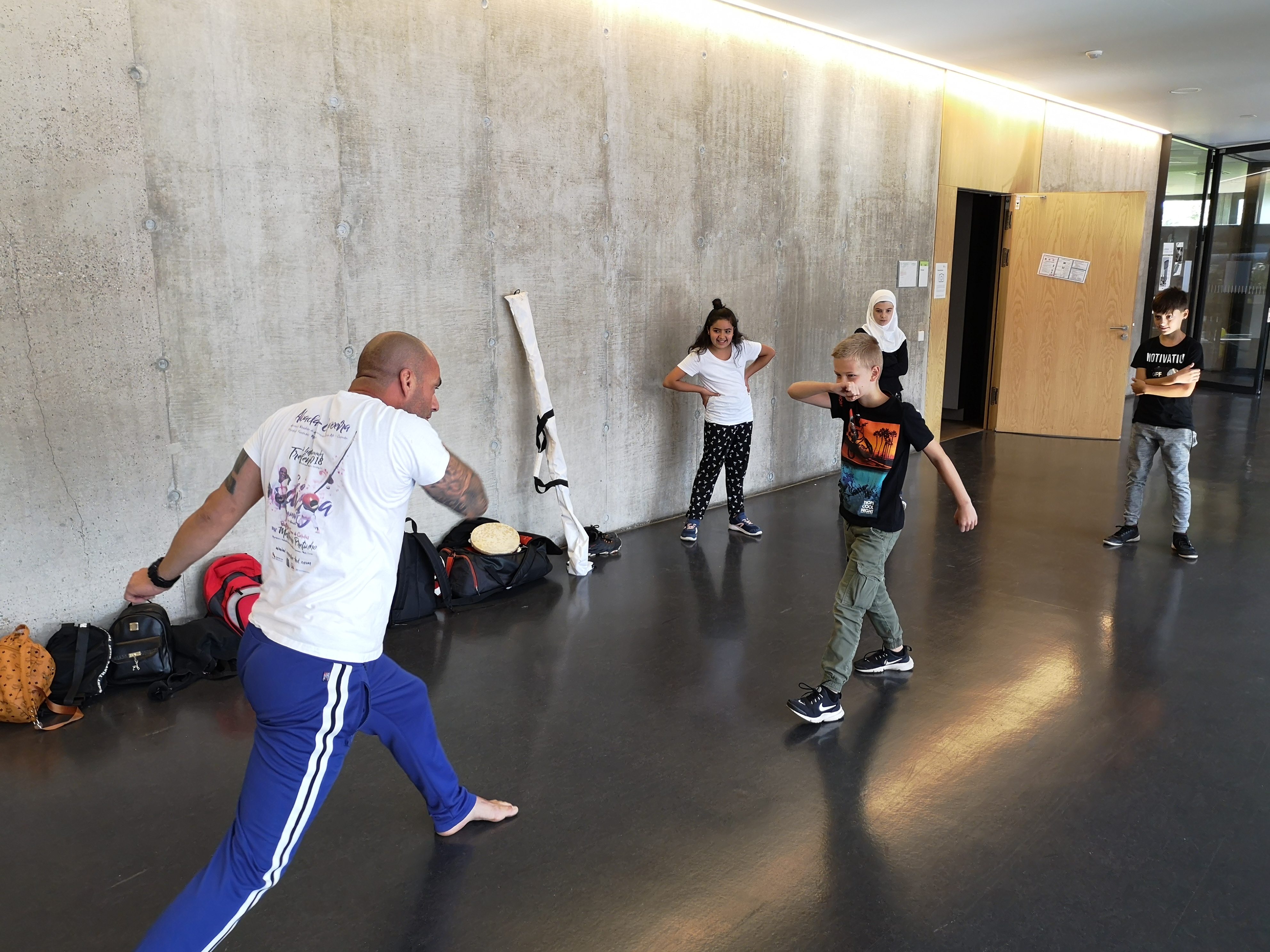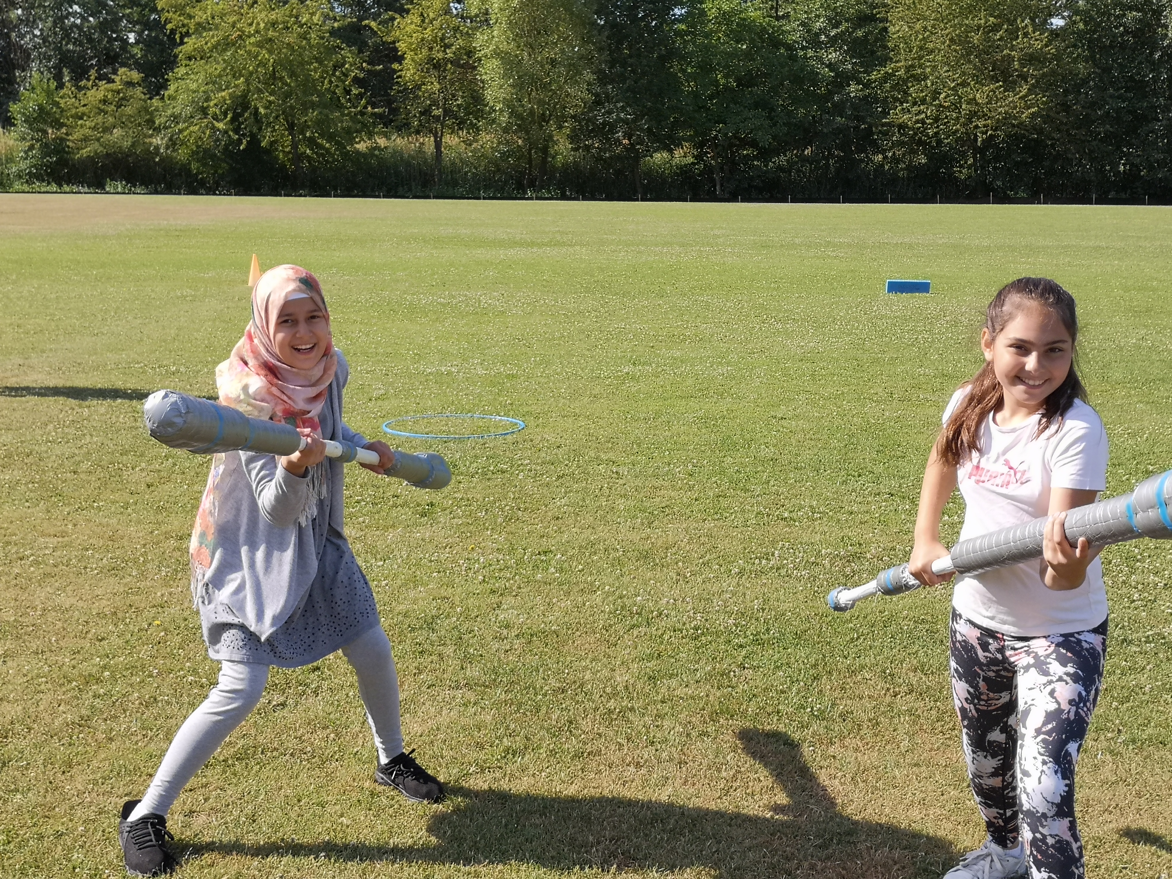 Wir hatten zwei Workshops gebucht. In der Kampfkunstarena hatten unsere Schüler die Möglichkeit, verschiedene Kampfkünste unter Anleitung auszuprobieren. Neben Boxen und Capoeira konnten die Kinder auch die kämpferische Mannschaftssportart Jugger ausprobieren, bei dem neben dem Umgang mit gepolsterten Styroporwaffen auch viel taktisches Geschick gefragt ist.