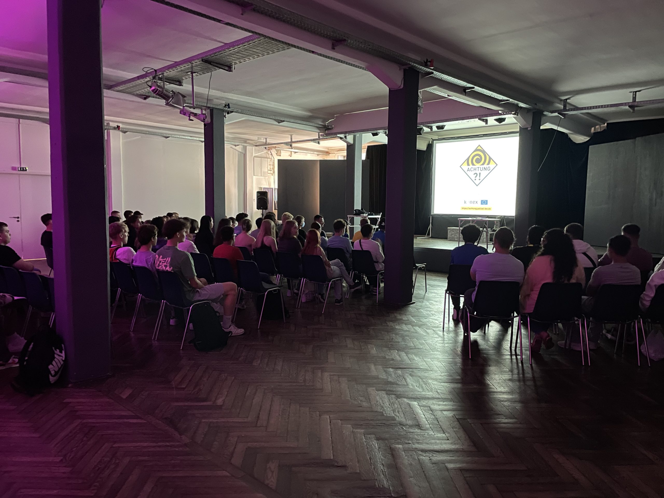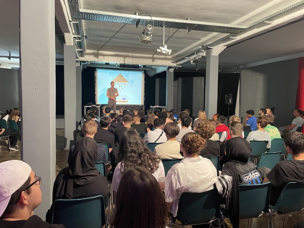 Die Neuntklässler sahen in dem Theaterstück „Achtung?!“ mehrere Formen der Radikalisierung. Es ging dabei um zwei Jugendliche, die aufgrund ihrer Differenzen zu Feinden wurden, obwohl sie seit ihrer Kindheit Freunde waren. Nach jedem Szenario folgte ein interaktiver Teil, in dem die Schüler*innen über Themen wie Gewalt, Extremismus und Radikalismus, sowie die Gründe für die Entscheidungen der Titelfiguren sprachen. Ziel war es, unsere Wissensbasis zu den Themen zu erweitern und aufmerksamer auf diese Problematiken zu werden.