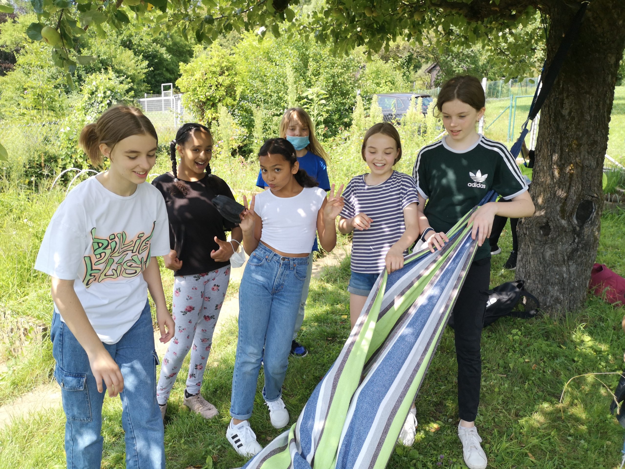 In der letzten Schulwoche des Schuljahres nutzte die Klasse 6b das gute Wetter und plante eine Wanderung durch den Feuerbacher Wald ins Feuerbacher Tal. Ziel war Herr Schmids Garten. Vor Ort hatten wir Zeit zum Spielen, während viele fleißige Köche das Grillgut vorbereiteten. Der Grill war schnell angeschmissen und das Sommer-Barbecue konnte beginnen. Als alle satt waren, machten wir uns gemeinsam auf dem Heimweg und schafften es gerade noch, dem aufziehenden Sommergewitter zu entkommen.