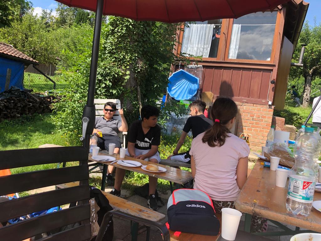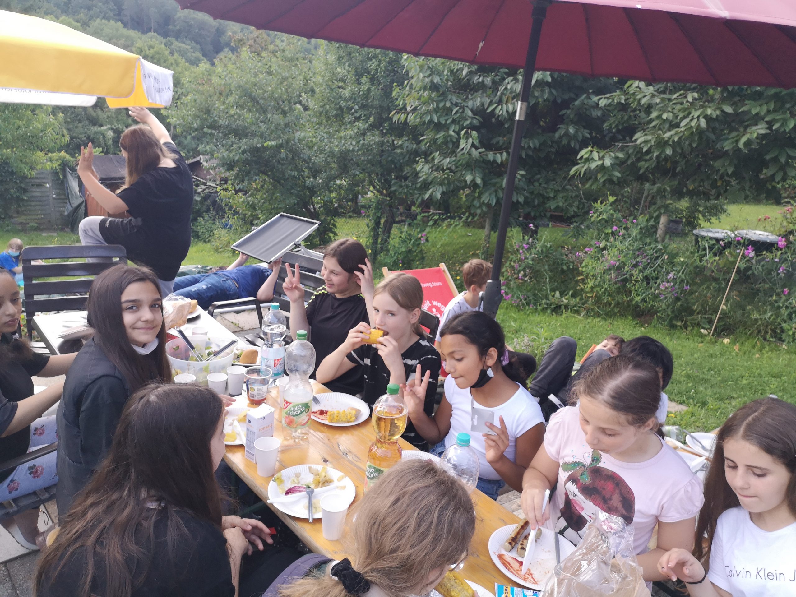 In der letzten Schulwoche des Schuljahres nutzte die Klasse 6b das gute Wetter und plante eine Wanderung durch den Feuerbacher Wald ins Feuerbacher Tal. Ziel war Herr Schmids Garten. Vor Ort hatten wir Zeit zum Spielen, während viele fleißige Köche das Grillgut vorbereiteten. Der Grill war schnell angeschmissen und das Sommer-Barbecue konnte beginnen. Als alle satt waren, machten wir uns gemeinsam auf dem Heimweg und schafften es gerade noch, dem aufziehenden Sommergewitter zu entkommen.