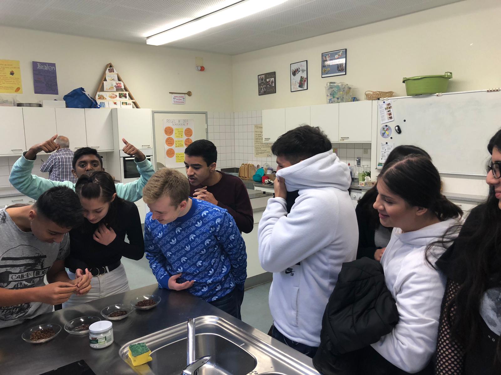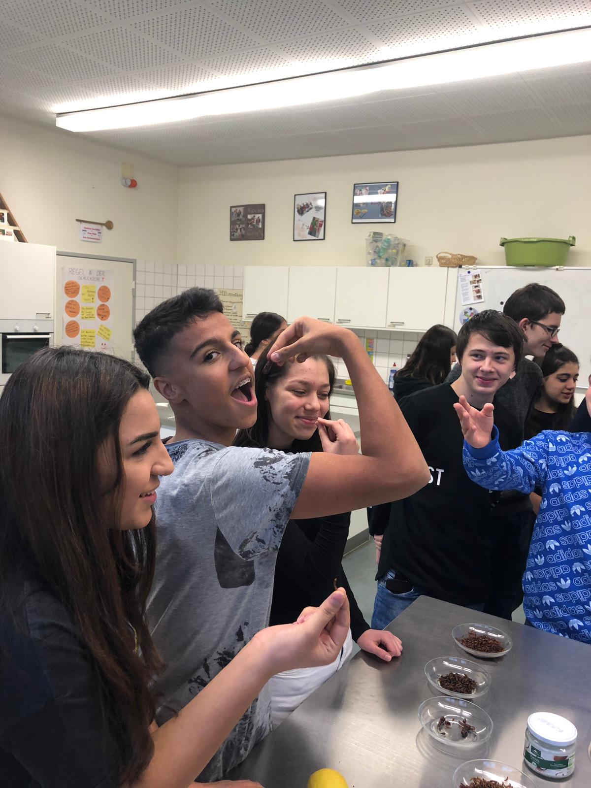 Innerhalb der aktuellen Diskussion um das Lesen ist der Fokus verstärkt auf den Umgang mit Sachtexten gerichtet. Verschiedene Schulleistungsstudien haben aufgezeigt, dass die Schülerinnen und Schüler Probleme beim Verstehen von Sachtexten, insbesondere beim Lösen der anspruchsvolleren Aufgabentypen, hatten. Daher ist es nicht verwunderlich, dass diese Textsorte wieder stärker im Zentrum des Deutschunterrichts steht und eine Pflichtaufgabe in der neuen Abschlussprüfung ist. Vor diesem Hintergrund kam die Klasse 9a auf die Idee, einen Sachtext nicht nur theoretisch zu erschließen, sondern tatsächlich auszuprobieren. Da die Schülerinnen und Schüler in den letzten Wochen Sachtexte zum Thema „Ernährung in der Zukunft- Insekten als Lebensmittel“ analysierten und mithilfe von Lesestrategien erschlossen, wurde kurzerhand diese neue „Bereicherung des Speiseplans“ ausprobiert. Gebratene Heuschrecken, Würmer, Grillen. Mutige probierten die Insekten, andere wiederum konnten sich nur schwer an die Alternative zu den bekannten Fleischsorten gewöhnen, wenngleich diese „gar nicht so komisch schmecken wie sie aussehen“, so das allgemeine Fazit der Schüler. Eine interessante neue Erfahrung, die so schnell keiner vergessen wird.
